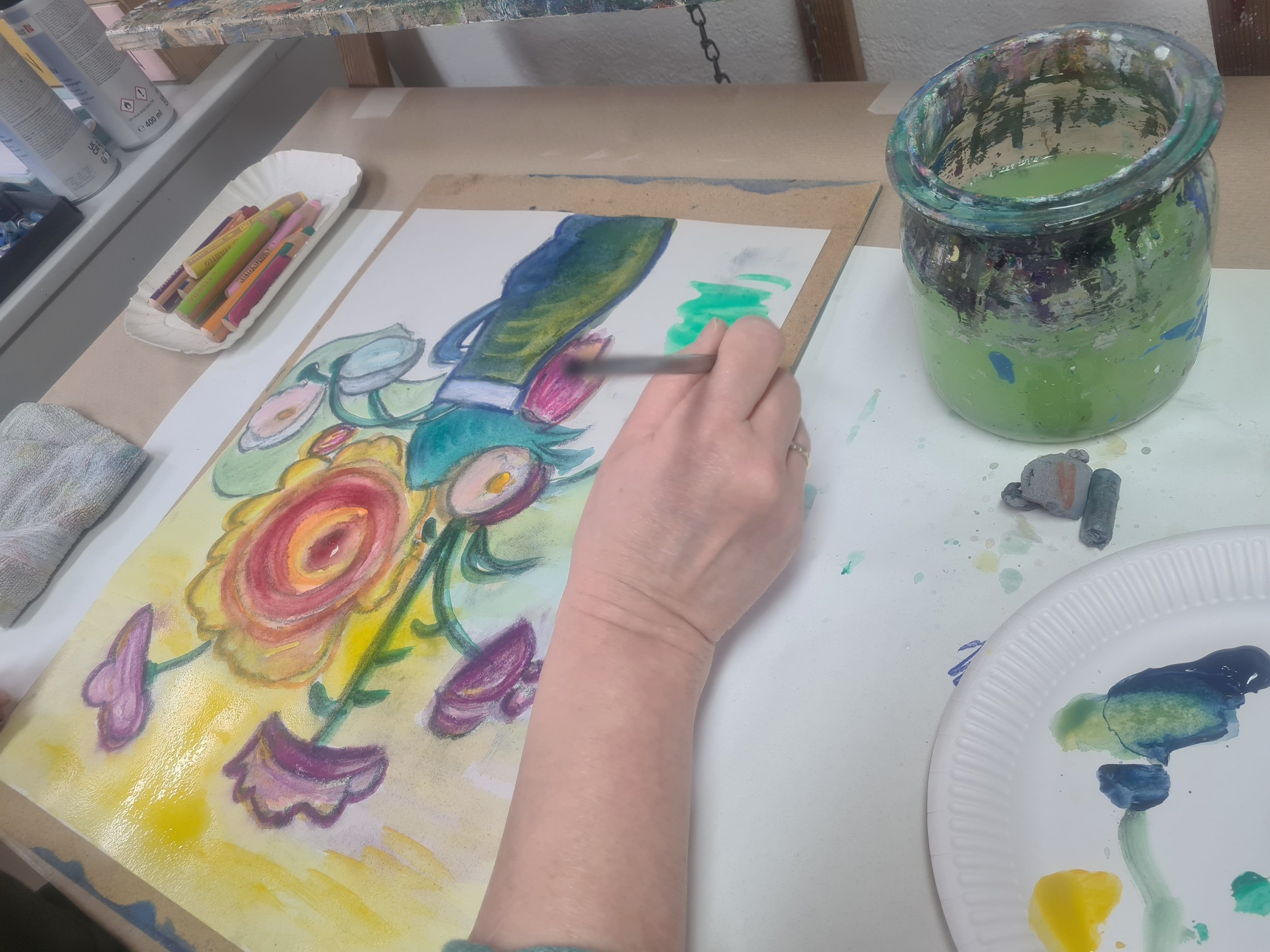 Wir beginnen gemeinsam mit einer malerischen Einstimmung….. Vorkenntnisse sind keine erforderlich. Dann darf jeder auf seine persönliche Entdeckungsreise in der Malerei gehen.