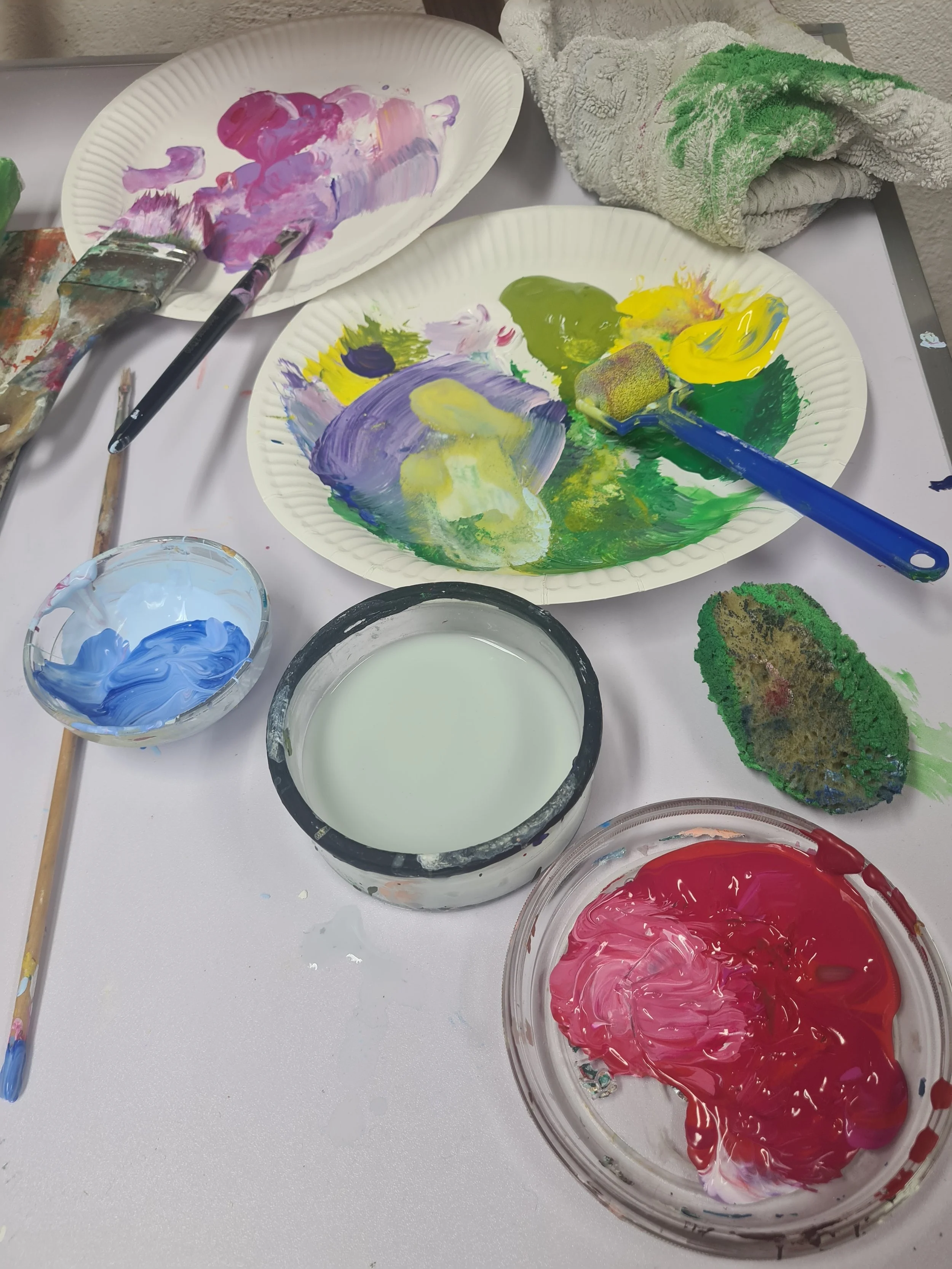 Im Atelier “entdecke Dich” dürfen sich Anfänger und Geübte auf ihre persönliche Malreise begeben und mit unterschiedlichen Maltechniken auf verschiedenen Maluntergründen experimentieren. Alle erhalten eine ausführliche und individuelle Einführung.